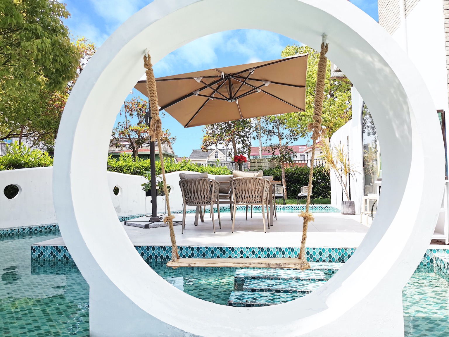Entire Villa with a Fancy Swimming Pool and Calm Outdoor Area. Modern Interior design. Perfect for all types of group meetups for upto 30 people. Equipped a large screen, in-house KTV and a sound system